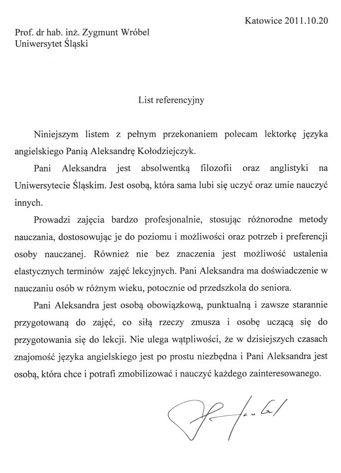 Szczególnie cenne dla moich kwalifikacji lektora było Kolegium Nauczycielskie: zamiast